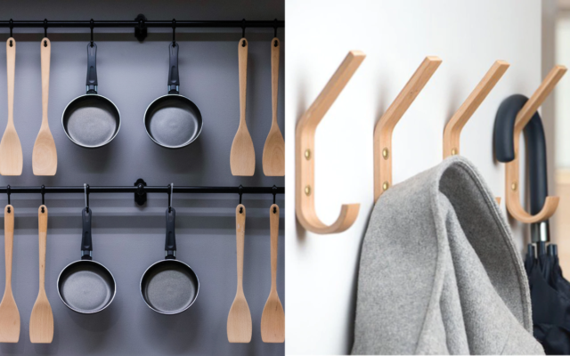If you are in this situation, the solution may be simpler than you thought. Find the nearest concrete wall and start installing hooks. Feel free to line them up in a row or customise placement depending on your cookware sizes. Reaching for a pan this way is easier than bending over a deep and disorganised drawer. For better aesthetics, choose hooks that are natural looking or with a design that blends with your overall kitchen look.