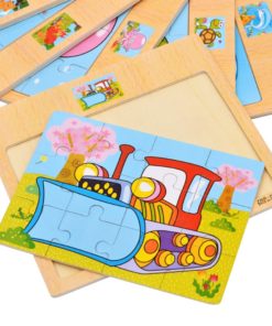 Cute puzzle. All made of wood, even the records themselves are not cardboard, but wooden. I recommend