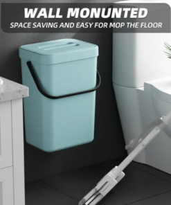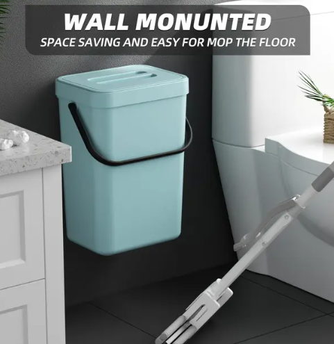 - Easy to Hang & Mount. This compact bin with a lid can be conveniently hung on kitchen cabinet doors, office lockers or drawers. It’s also wall-mountable using an adhesive pad.